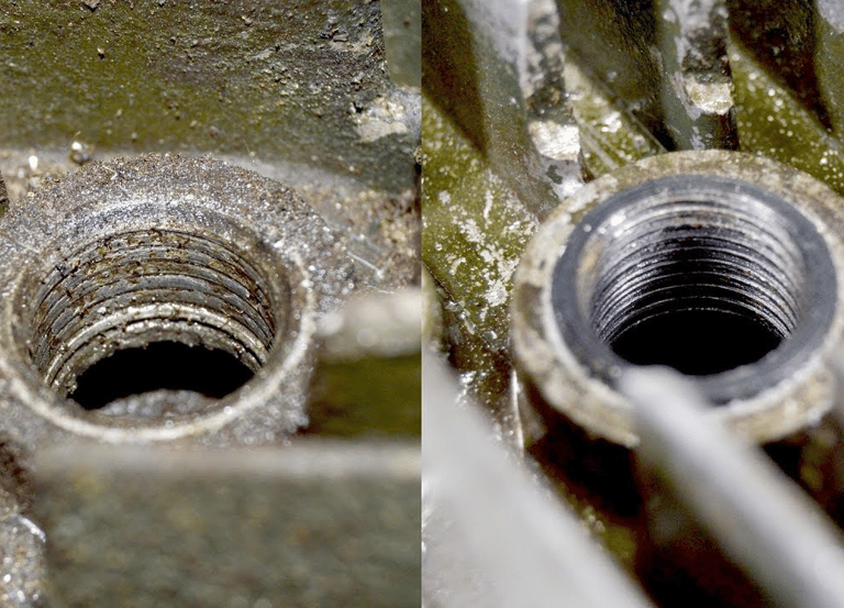 En solo 20 minutos reparamos roscas dañadas con insertos HeliCoil®, dejándolas en el mismo diámetro y paso original.